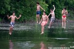 A group of young swimmers jump off a bridge into the Assomption River to cool off from the hot summer heat in Joliette, Que. on Tuesday, June 23, 2020. THE CANADIAN PRESS/Paul Chiasson