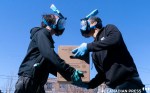 Volunteers at the Reseau d’entraide de Verdun, wear diving masks, get food ready for their weekly food donation in Montreal, on Monday, April 20, 2020. THE CANADIAN PRESS/Paul Chiasson