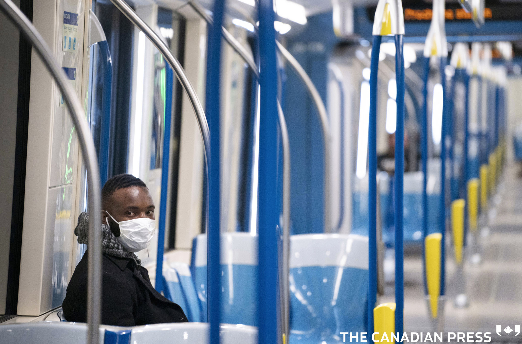 COVID Cda 20200324 Published June 29, 2021 at 2126 × 1402 in 2020 A lone commuter wearing a protective mask rides a near empty subway car in Montreal on Tuesday, March 24, 2020. THE CANADIAN PRESS/Paul Chiasson Like Loading...
