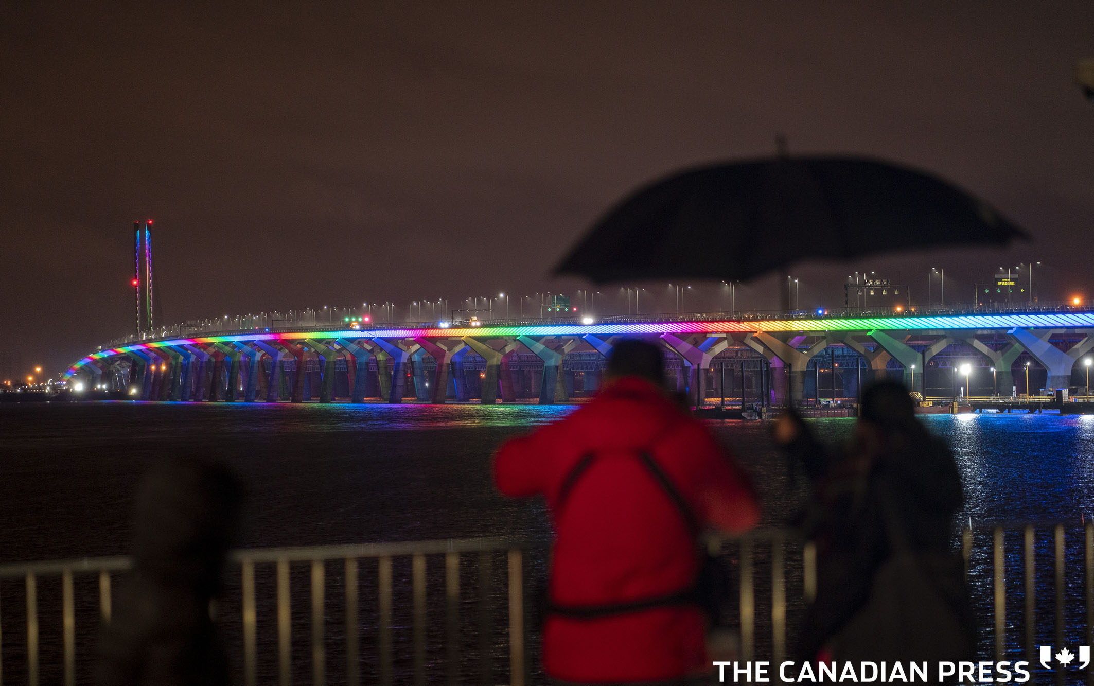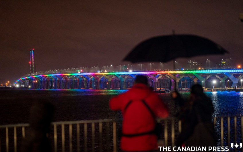 COVID Cda 20200329 Published June 29, 2021 at 2126 × 1333 in 2020 A man takes photographs of the Samuel Champlain Bridge lit up in the colours of the rainbow in solidarity to healthcare workers in Montreal on Sunday, March 29, 2020. THE CANADIAN PRESS/Paul Chiasson Like Loading...
