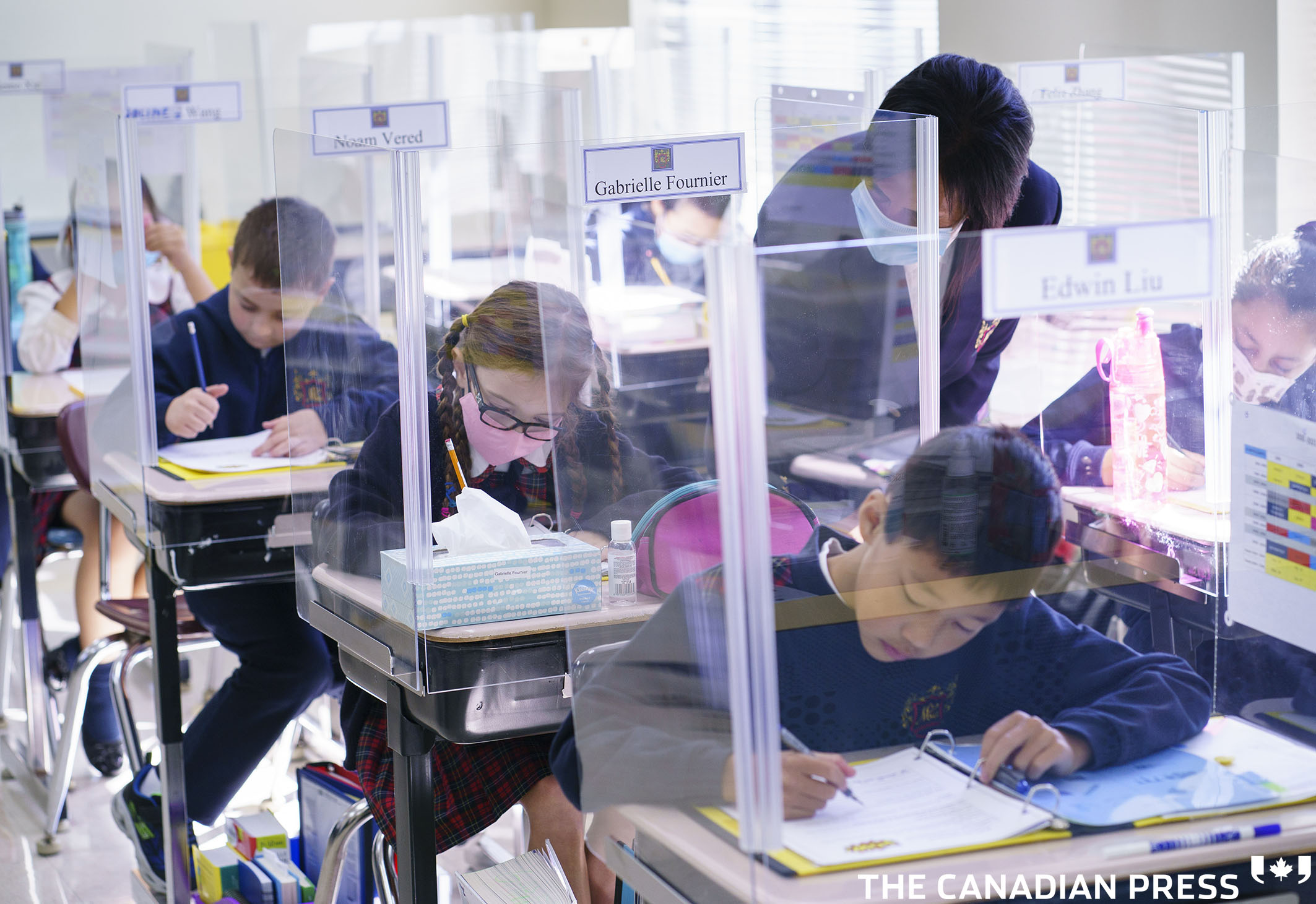 COVID Que 20200831 Published June 29, 2021 at 2126 × 1461 in 2020 Students are seen through individual plexi-glass shields at the Marie-Claire Academy in Montreal, on Monday, August 31, 2020. THE CANADIAN PRESS/Paul Chiasson Like Loading...