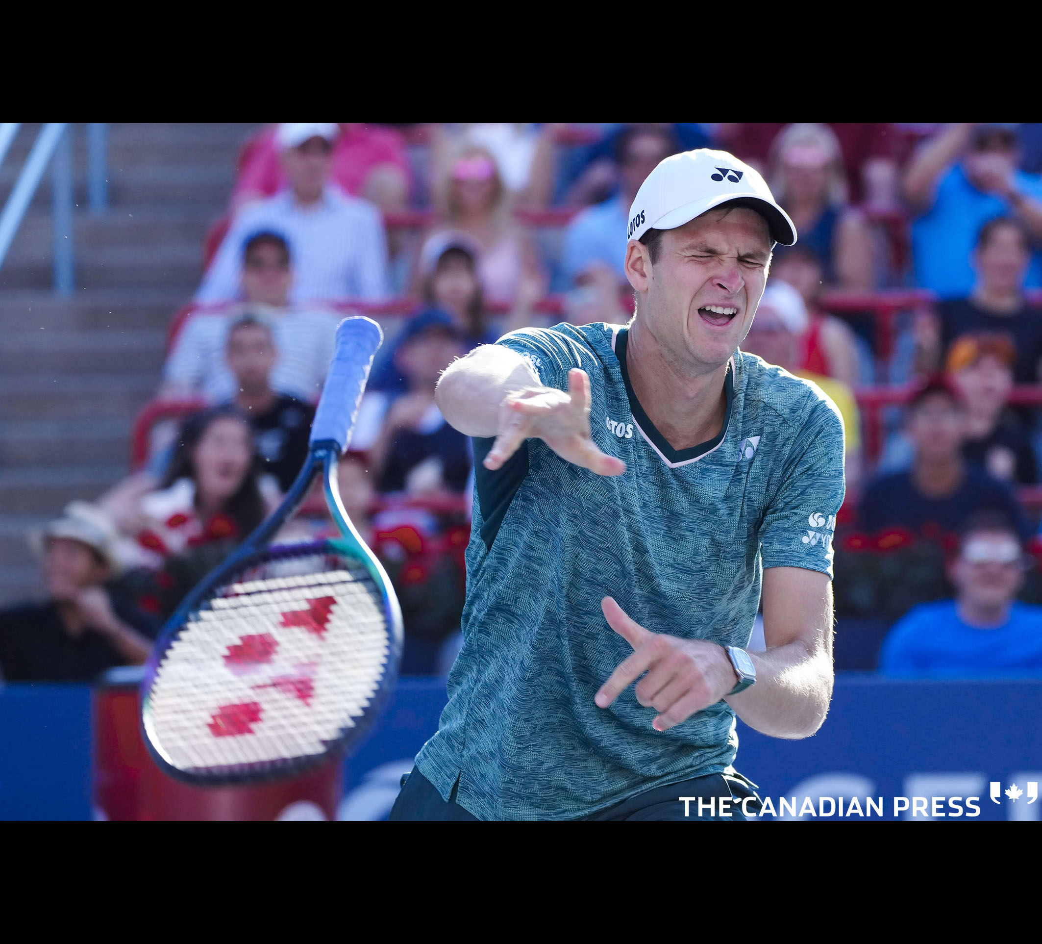 Hubert Hurkacz of Poland returns to Capser Ruud of Norway during semifinal play at the National Bank Open tennis tournament, Saturday, August 13, 2022 in Montreal. THE CANADIAN PRESS/Paul Chiasson