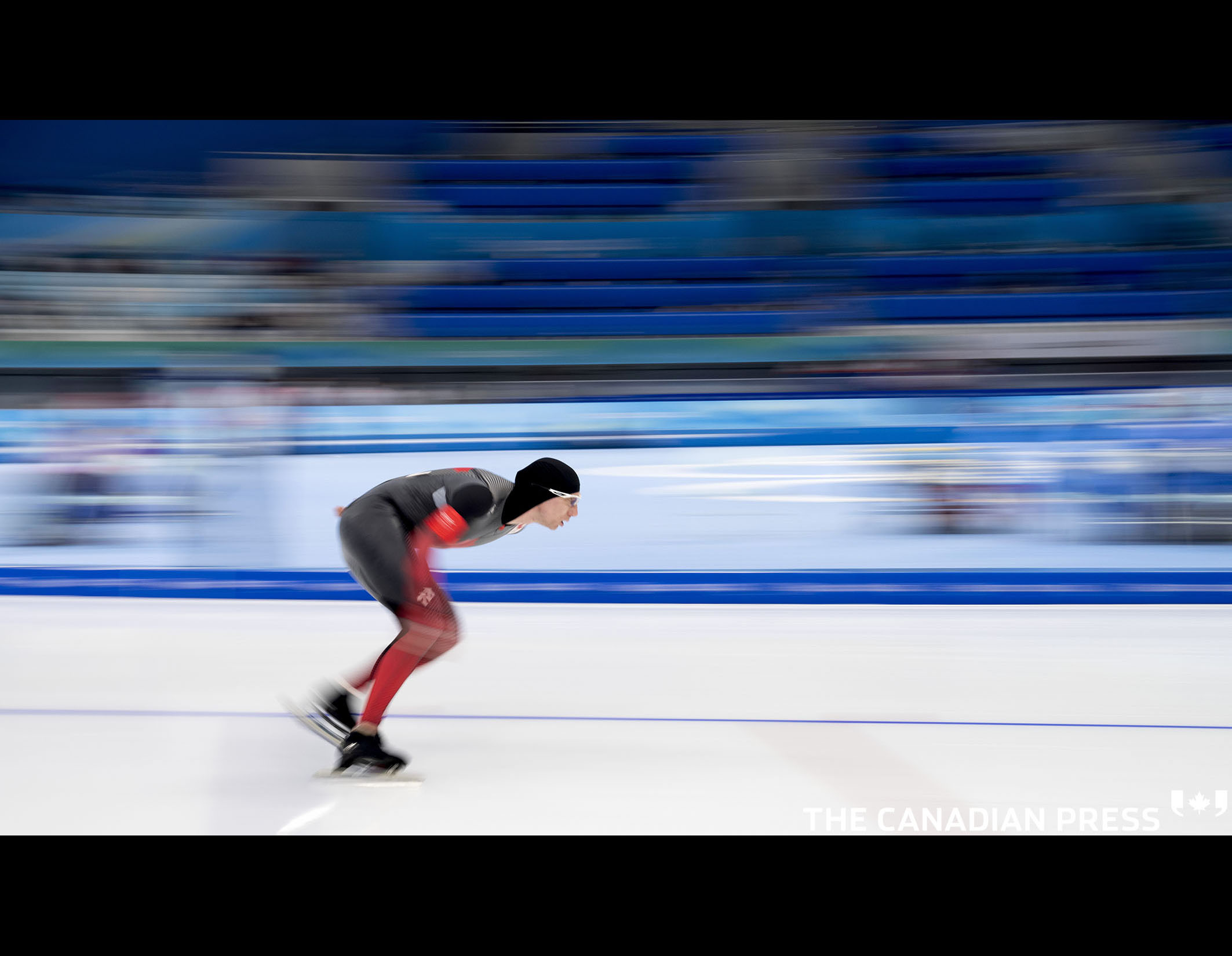 Canada’s Ted-Jan Bloemen powers around the oval in the men’s 5,000 metre speedskating race at the 2022 Winter Olympics in Beijing on Sunday, February 6, 2022. THE CANADIAN PRESS/Paul Chiasson