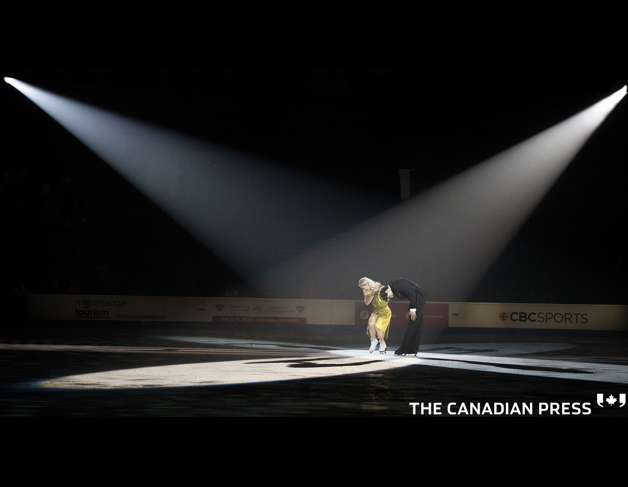 Ice dance gold medalists Canada’s Piper Gilles and Paul Poirier perform during the closing gala at Skate Canada International in Mississauga, Ont., on Sunday, October 30, 2022. THE CANADIAN PRESS/Paul Chiasson