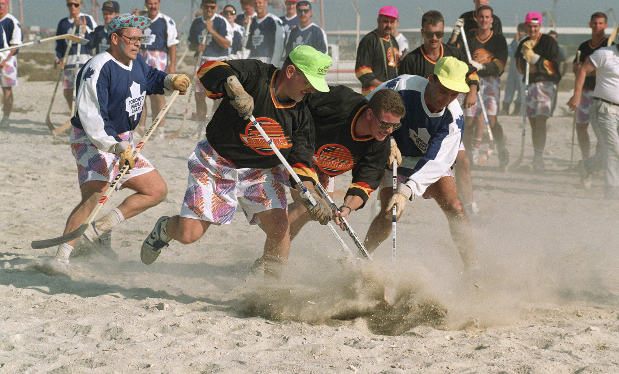 Bahrain Published February 10, 2021 at 2000 × 1210 in Bahrain BAHRAIN Des membres des troupes canadiennes se disputent un match de hockey dans le dsert durant la Guerre du Golf en 1990.