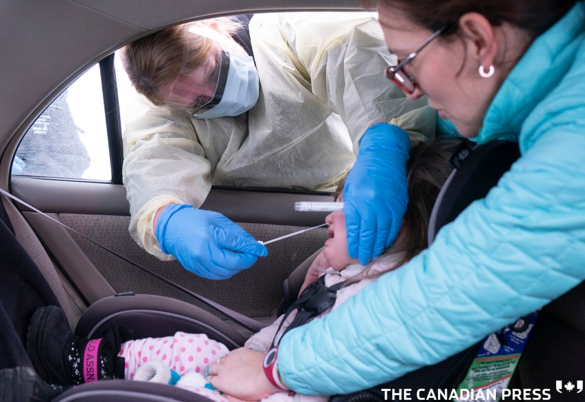 CDA Coronavirus 20200319 Published March 22, 2020 at 2126 × 1461 in CDA Coronavirus 20200319 A young girl cries as she is swabbed by a nurse at a drive by screening at Ste-Justine Children Hospital in Montreal on Thursday, March 19, 2020. THE CANADIAN PRESS/Paul Chiasson