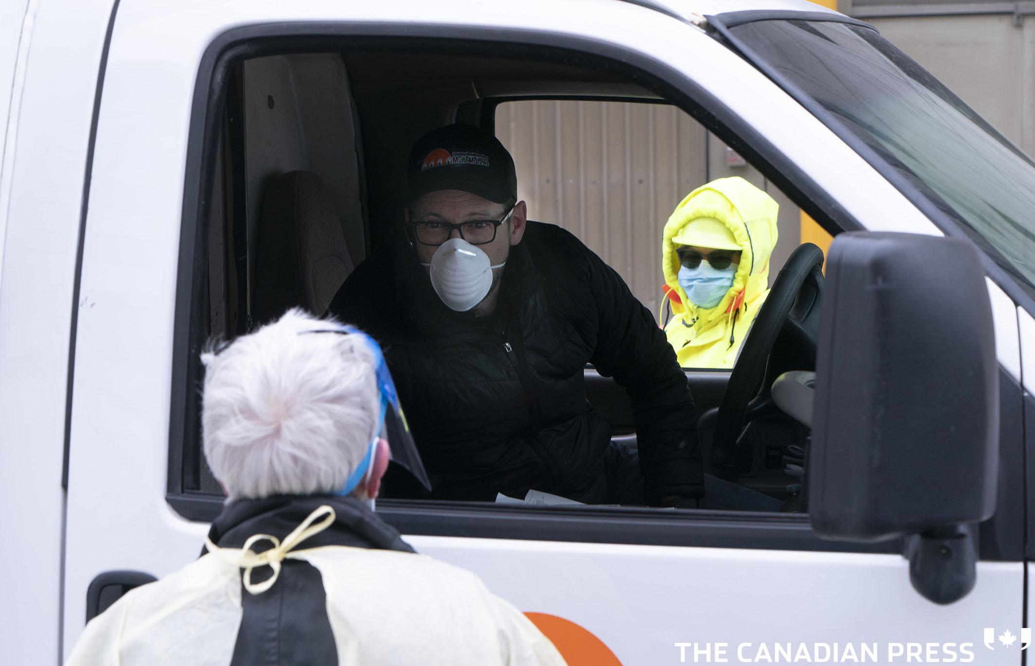 COVID Cda 20200323 Published April 4, 2020 at 2126 × 1369 in COVID Cda 20200323 A health care worker screens a man his truck at a walk-in COVID-19 test clinic in Montreal on Monday, March 23, 2020. THE CANADIAN PRESS/Paul Chiasson