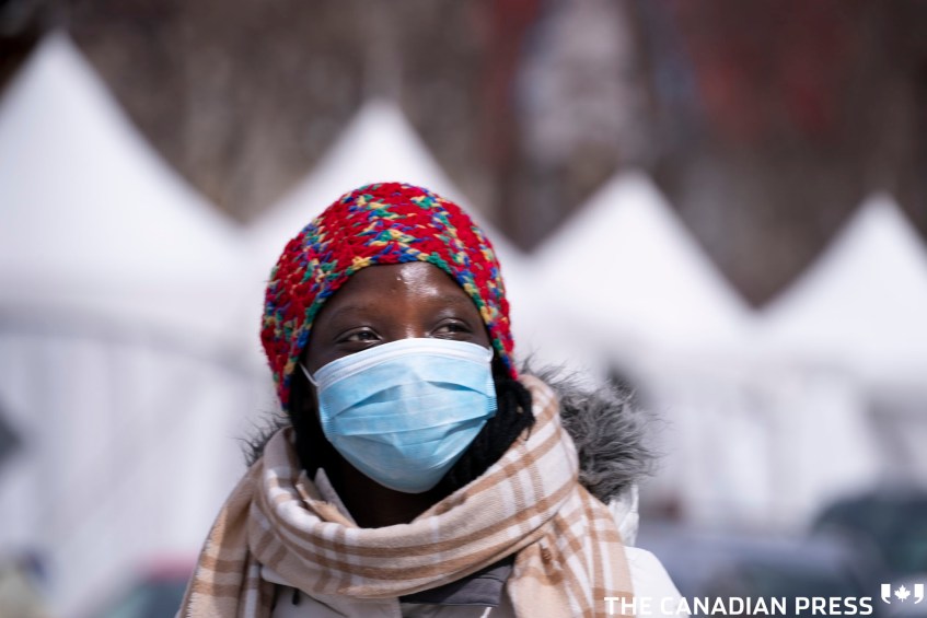 COVID Cda 20200325 Published April 4, 2020 at 2126 × 1417 in COVID Cda 20200325 A woman wearing a protective mask arrives at a walk-in COVID-19 test clinic in Montreal on Wednesday, March 25, 2020. THE CANADIAN PRESS/Paul Chiasson