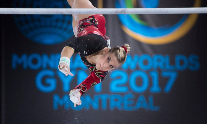 Elisabeth Seitz Published October 16, 2017 at 2000 × 1195 in Elisabeth Seitz Elisabeth Seitz of Germany performs her routine in the uneven bars individual final at the Artistic Gymnastics World Championships Saturday, October 7, 2017 in Montreal. THE CANADIAN PRESS/Paul Chiasson