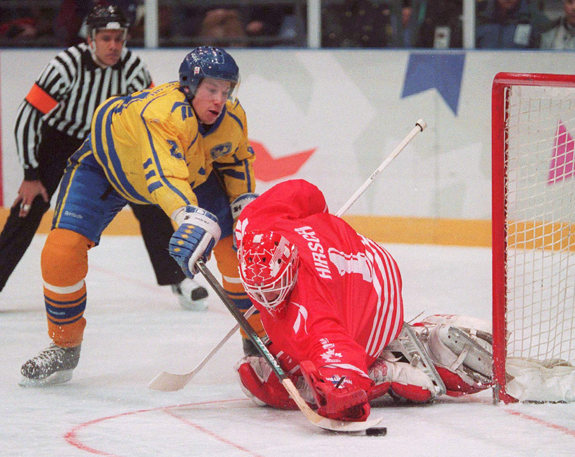 Norvège Published February 10, 2021 at 2000 × 1590 in Norvège NORVéGE Le sudois Peter Forsberg marque contre le gardien de lquipe Canada Cory Hirsch lors de tirs de barrage pour permettre son quipe de gagner la mdaille d’or dans le tournois de hockey masculin aux Jeux Olympiques de Lillehammer.