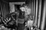 - Lighting up a cigarette in the darkness of the container.